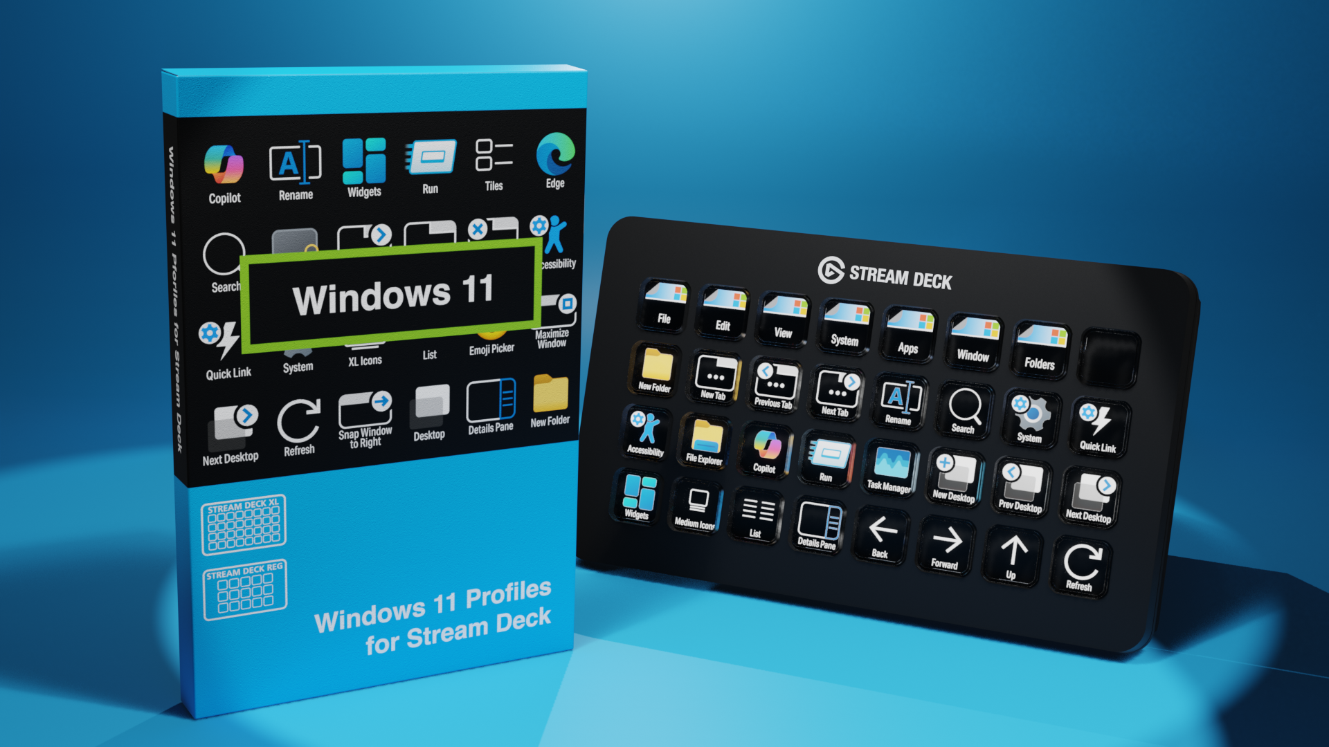 55 (Windows) programmed commands for the Stream Deck XL and Stream Deck Regular. Many of the menu items available via shortcut keys in Windows 11 at the tip of a finger. Organized into folders for easy access.